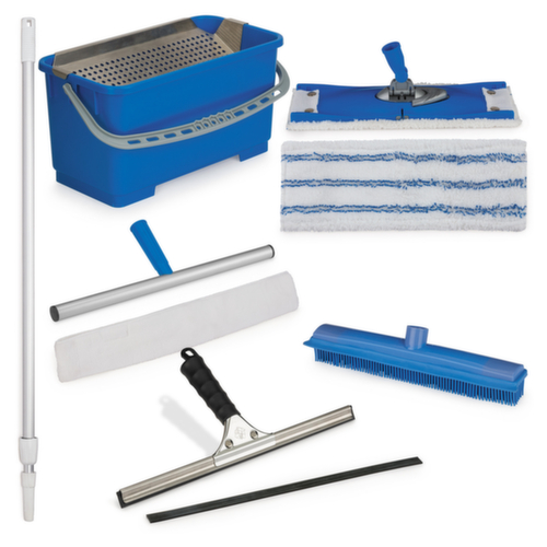 "longDescription": "<h2>Abtropfablage für Einwascher und Abzieher</h2><p>Das Fenster- und Bodenreinigungssystem enthält alle wichtigen Reinigungsutensilien die für eine professionelle Reinigung von Fenstern und Böden benötigt werden. Die Teleskopstange aus Aluminium ist auf bis zu 2 Meter ausziehbar, wodurch eine ergonomische Haltung bei der Boden- und Fensterreinigung möglich ist. Die Stange ist per Gewinde leicht an alle Zubehörteile anzubringen. Für die Bodenreinigung enthält das Reinigungssystem einen Gummibesen und einen Mopphalter. Der Gummibesen ist trocken und nass verwendbar, mit ihm können verschiedene Oberflächen wie Teppiche, Fliesen, Parkett und sogar der Außenbereich gefegt, gereinigt und getrocknet werden. Der Mopphalter des Reinigungssystem ist aus stabilem Polypropylen, das um 360 Grad drehbare Gelenk ermöglicht die Reinigung auch an schwer zugänglichen Stellen unter Sitzgruppen oder in Ecken. Der hygienische Mikrofaser Mopp kann gewaschen werden und ist daher besonders langlebig. Ein weiterer Ersatzmopp ist zusätzlich erhältlich. Für die effiziente Fensterreinigung enthält das Fenster- und Bodenreinigungssystem einen Einwascher mit Baumwollbezug, durch die weichen Baumwollfasern werden empfindliche Glasoberflächen nicht verkratzt. Der Baumwollbezug ist ebenfalls waschbar und ein zusätzlicher Bezug ist jederzeit bestellbar. Mit dem stabilen Abzieher aus Stahl wird jedes Fenster streifenfrei trocken. Den Abzieher gibt es in 3 Breiten, er ist beispielsweise auch in Duschkabinen anwendbar. Das Gummi kann leicht ausgetauscht werden, Ersatzgummis sind zusätzlich lieferbar. Für den stabilen Kunststoffeimer mit 22 Liter Fassungsvermögen ist eine Abtropfablage für Einwascher und Abzieher bestellbar die das Fensterputzen zusätzlich erleichtert. Folgende Komponenten sind erhältlich: - Stabile Teleskopstange: Aus Aluminium. Länge ausziehbar von 1 auf 2 m. - Mopphalter: Aus Polypropylen, inkl. Mikrofaser-Mopp. Gelenk 360° drehbar. - Mopp: Maße: 12x35 cm. - Einwascher: Breite 45 cm. Einwascher mit Baumwollbezug. - Bezug für Einwascher: Baumwolle, Breite 45 cm. - Gummibesen: Kann trocken oder nass verwendet werden. - Abzieher: 3 Breiten erhältlich: 25, 35 oder 45 cm. Material: Stahl mit austauschbarem Gummi. - Gummi für Abzieher Breite 25cm, 35 cm oder 45 cm. - Eimer: Rechteckig. Volumen: 22 l. Maße: 49 x 24 x 24 cm. Material: Kunststoff. - Ablage: Abtropfablage für Einwascher und Abzieher. Bei uns finden Sie auch Wischtücher sowie weitere Reinigungsmittel für den professionellen Bedarf.</p><br>",