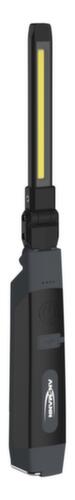Mit Magnet am Boden zur stehenden Befestigung und ausklappbarem, um 180° drehbaren Haken. Leuchtdauer 2 - 12 h (bei von/bis-Angaben wird von max. Lumen bzw. min. Lumen ausgegangen). Leuchtweite 7 - 22 m. Bei Nichtgebrauch platzsparend zusammenklappbar. Ladezeit 4 h. Display mit Batterie- und Ladeanzeige. Mit Akku. Kompatibel mit Lithium-Ionen. Temperaturbeständig von -5 °C bis +40 °C. Schutzart IP20: Fremdkörper > 12,5 mm, kein Wasserschutz.