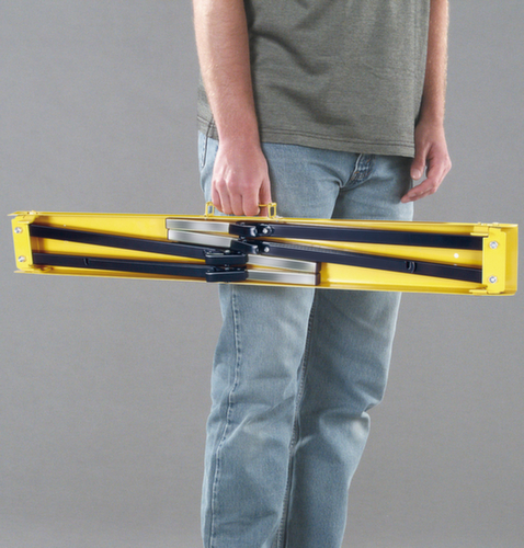 Merkmale:Füße einzeln in der Höhe verstellbar. Auflagefläche rutschhemmend und materialschonend, Breite 970 mm. Einfach zu tragen durch integrierten Tragegriff. Bei Nichtgebrauch platzsparend zusammenklappbar. Höhenverstellbarer Arbeitsbock mit strapazierfähiger Kunststoffbeschichtung in schwarz/gelb.