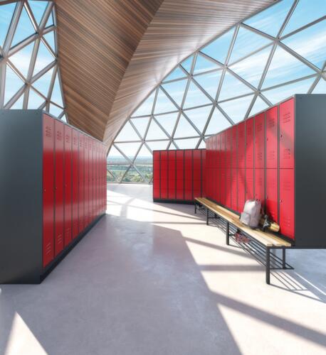 "description": "HxBxT 2120x1200x815mm, 3 Abt., Abt. B 400mm, Zyl.-Schl., untergeb. Sitzbank, Leisten Kunststoff, Korpus RAL7035, Front RAL2004",