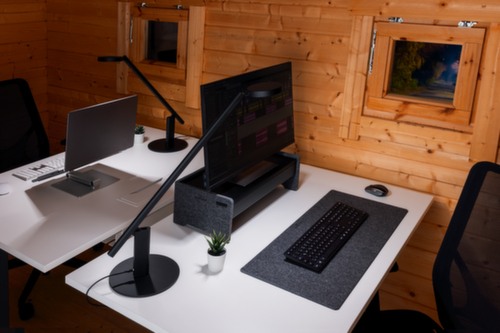 Ausgestattet mit integriertem Kabelmanagement. 3-Fach ergonomisch höhenverstellbar. Aus zu 60 % recyceltem PET-Filz in anthrazit.