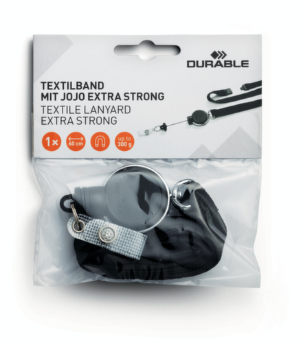 "metaDescription": "Durable Umhängeband mit Jojo - f. schwere Kartenhalter, Schlüssel, Band L 800mm, Textil",