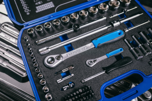 "longDescription": "Der neue GEDORE Kunststoff-Knarrenkasten ist für Industrie, Automotive wie auch den Heimwerker & Hobbyschrauber geeignet. Er ist mit einer schwarz/blauen Schaumstoff Check-Tool Einlage ausgestattet, die das Fehlen der Werkzeuge sichtbarer macht , Durch die tropfenförmige Kopfform der Umschaltknarren ist dieser Satz besonders gut für engste Schraubstellen geeignet , 1/4\" und 1/2\" Steckschlüssel-Sechskant Satz mit allen metrischen Größen von 4-32 mm sowie Bit-Satz für die gängigsten Antriebe wie Schlitz, PH, PZ, TX, XZN und Innen-6-kant, Die Umschaltknarren verfügen über einen 2-Komponenten-Griff, Umschalthebel und Druckknopfauslösung, welche ein komfortables, schnelles und sicheres Arbeiten zulassen, Abhängig von der Schlüsselweite können die Steckschlüsseleinsätze bis zu 375mm in der Antriebstiefe verlängert werden<br>",