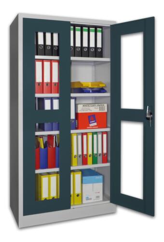 "description": "HxBxT 1950x1200x500mm, 4xStahlboden, Zyl.-Schl., Sockel",
