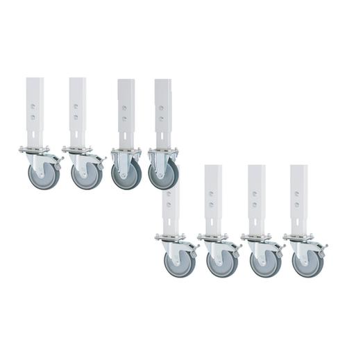 "longDescription": "<h2>Rollensatz</h2><strong>spurlos und bodenschonend</strong><br><ul><li>Geringer Anfahrwiderstand - Rad mit thermoplastischer Gummi-Bereifung</li><li>Radkörper aus Polypropylen</li><li>Sichere Ausstattung - Lenkrollen mit Feststeller</li></ul>",