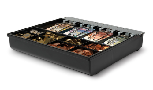"description": "5 Schein-/8 Münzfächer, HxLxB 64x410x350mm, Kunststoff/Metall",