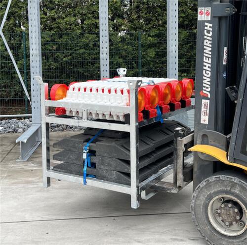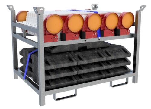 10 Baken, 10 Bakenleuchten, 10 Fußplatten, 2 Zurrgurte, 1 Lager- und Transportpalette