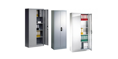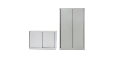 Flügeltürschränke sind die klassische Lösung, um Bürobedarf zu verstauen. Bei ihnen trifft viel Platz auf unkomplizierte Handhabung. Als Allrounder sind sie für unterschiedliche Zwecke einsetzbar. So können beispielsweise technische Geräte, Präsentationsmaterial und andere Bürohelfer dort untergebracht werden. Die Flügeltüren nehmen mehr Raum ein als andere Türmechanismen, daher eignen sie sich besser für große Büroräume. Neben einfachen Flügeltürschränken gibt es auch Kombischränke, die zusätzlich mit Regalböden oder Schubladen ausgestattet sind.