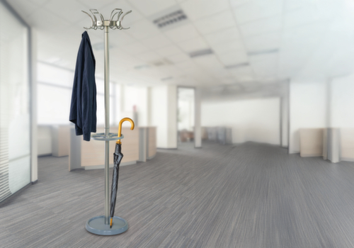 "description": "HxØ 1800x400mm, 6 Mantelhaken, Schirmhalter/Tropfmulde, Stahl/Marmor, pulverbesch., silber",