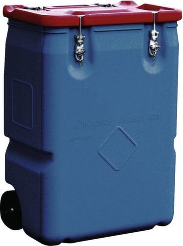 "description": "f. Putzlappen, Binder/Granulate, HDPE, blau, 250l, HxBxT 890x600x600mm, m. Bügelverschluss, m. Schiebegriff, 2 Hartplastikräder",