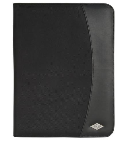 "description": "für DIN A4, mit Einsteck-/Kartenfächern, aus Kunstleder in schwarz",